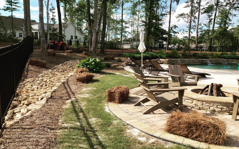 Landscape design includes creating stone pathways, weed barrier installation, shrub installation, sod installation, flagstone patios, fire pits, as well as debris and brush removal.